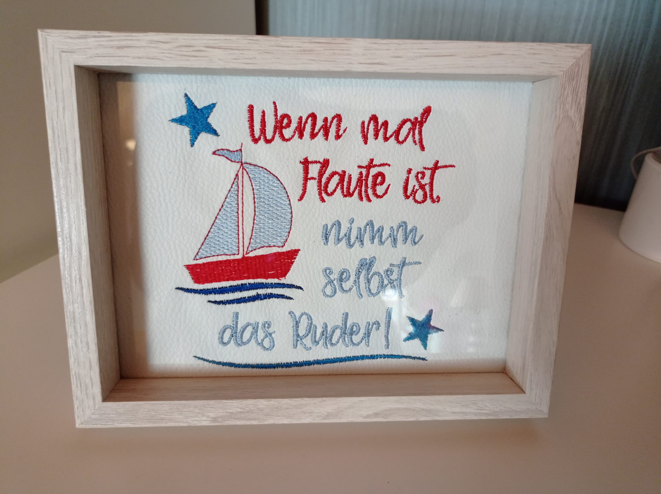 Bilderrahmen mit Sprüchen, auf Kunstleder gestickt