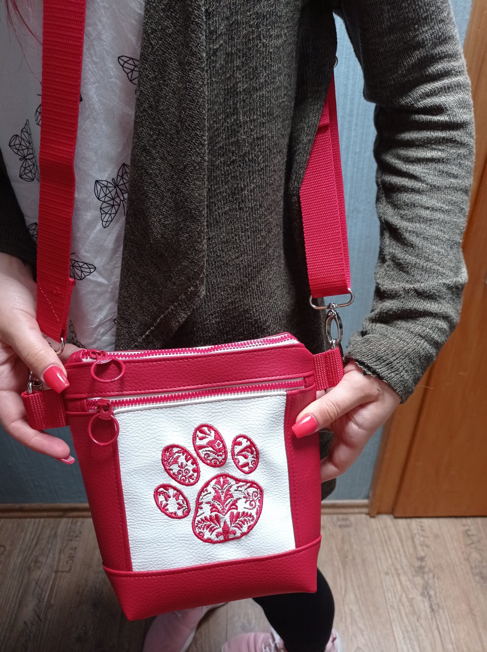 Tolle Gassitasche, außen Kunstleder, innen Baumwollstoff. Zwei Innenfächer mit Reissverschluss, Größe ca. 20 x 20 x 9 cm. Das Gurtband ist abnehmbar und verstellbar. Die Tasche kann als Bauchtasche oder Umhängetasche getragen werden.