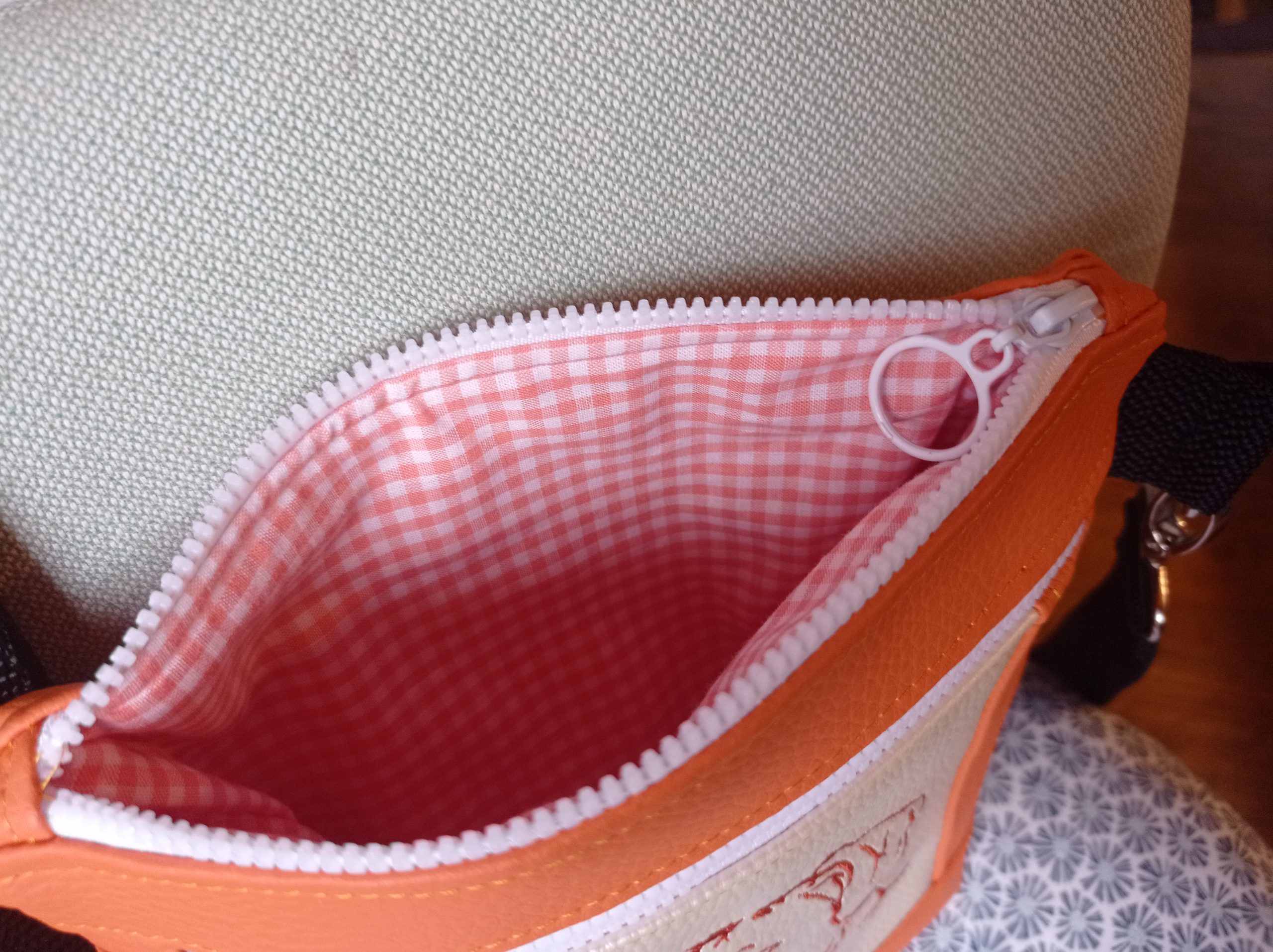 Tolle Gassi-Tasche aus Kunstleder. Zwei Innentaschen mit Reisverschlüssen. Größe ca. 20 x 20 cm. Das Gurtband ist abnehmbar und verstellbar.