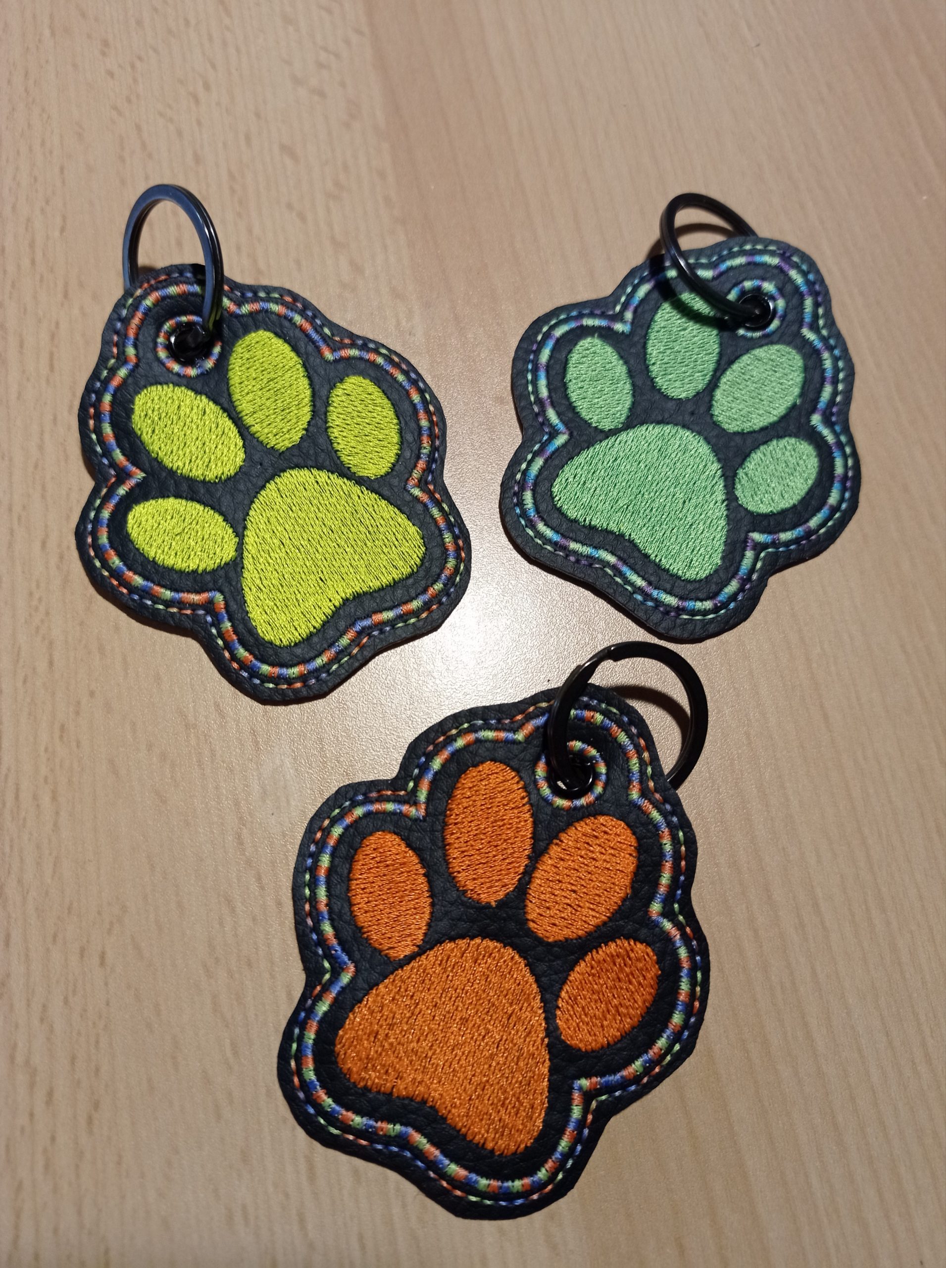 Diese tollen Schlüsselanhänger sind auf Kunstleder gestickt. Die Größe beträgt ca. 8 cm x 7 cm. Es sind viele verschiedene Farben machbar.